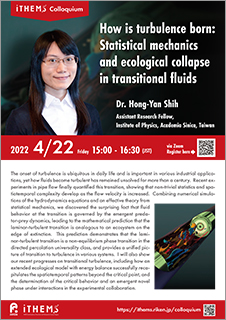 iTHEMS Colloquium: How is turbulence born: Statistical mechanics and ecological collapse in transitional fluids