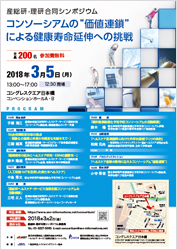 | プログラム | 産総研-理研合同シンポジウム『コンソーシアムの“価値連鎖”による健康寿命延伸への挑戦』ポスター |