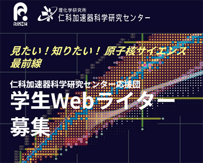 | お申込み・詳細 | 「仁科加速器科学研究センター応援団 学⽣Webライター募集」のページをご覧ください。 |