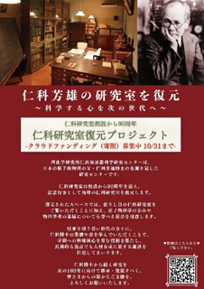 理化学研究所(理研)仁科加速器科学研究センターは本日10時より、クラウドファンディング「仁科芳雄の研究室を復元~科学する心を次の世代へ~」を公開、寄付募集を開始いたしました。理研のクラウドファンディングとしては、2022年7月27日に開始した「科学史を未来へ繋ぐ~理化学研究所 資料修復・保存プロジェクト~」に続き、第2号となります。