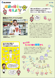 大きく広げてみんなで見たり、壁に貼っていつでも眺めたりできるような紙面構成で、キレイな写真や分かりやすい図解をたくさん掲載し、理研の博士と一緒に一つのテーマを掘り下げていきます。