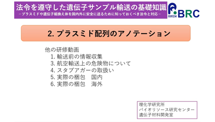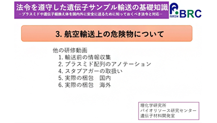 理化学研究所(理研)バイオリソース研究センター 遺伝子材料開発室では、国内外の約400機関と連携し、年間1,000件以上の遺伝子サンプルを提供しています。2025年1月にオンライン技術研修を行い、プラスミドや遺伝子組換え大腸菌の輸送に関する主要法令と正しい梱包法、初めて塩基配列データを扱う方のための遺伝子情報の確認方法を解説しました。